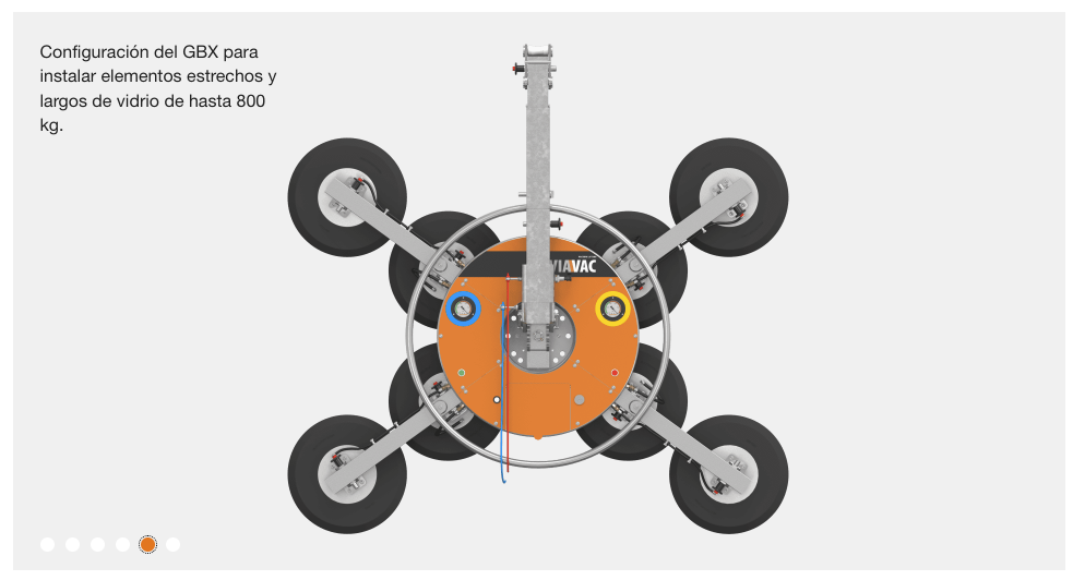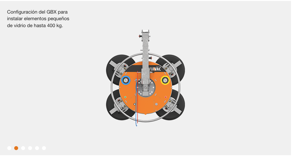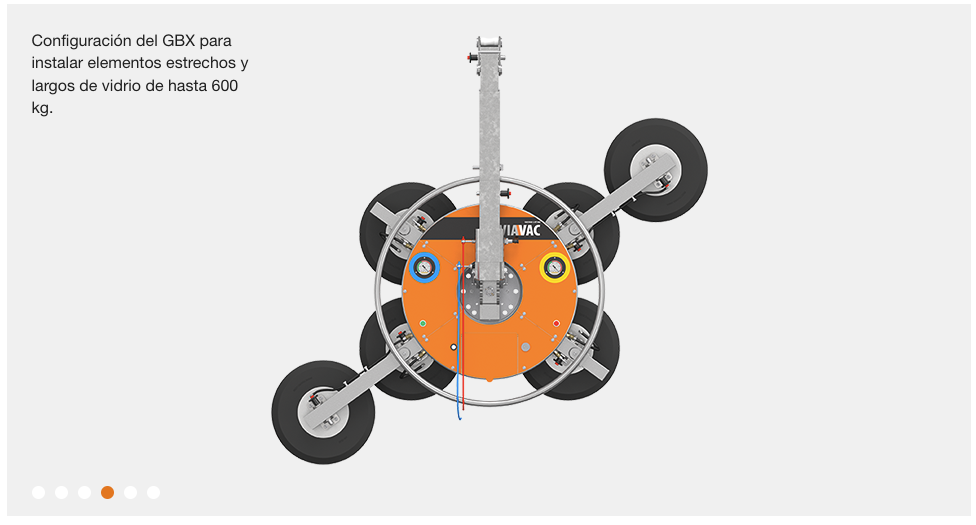 El VIAVAC GBX es un versátil elevador por vacío de paneles ideal para la instalación de paneles de vidrio de hasta 800 kg. Este elevador cuenta con seis configuraciones distintas de fácil montaje. VIAVAC GBX puede con todo tipo de paneles de vidrio: pequeños, largos, estrechos o voluminosos. El elevador se acopla a los elementos de vidrio de forma rápida y precisa, lo que agiliza el proceso de instalación. También se puede bloquear el elevador hasta un ángulo determinado para instalar elementos de vidrio inclinado de forma sencilla y segura.